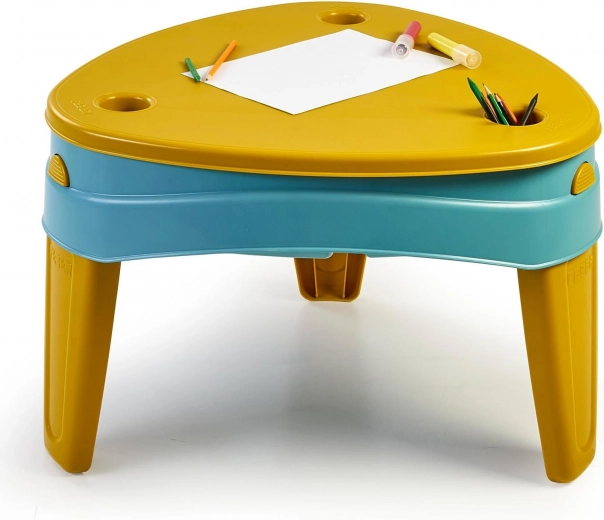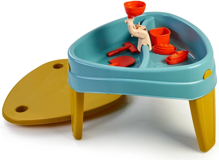 Cuvetele separate permit umplerea simultană cu apă și cu nisip. Copiii pot astfel amesteca, turna și experimenta o joacă senzorială fără dezordine.