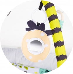 Oglinda integrată și elementele contrastante stimulează curiozitatea și sprijină dezvoltarea vederii, a conștientizării de sine și a percepției senzoriale.