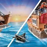Descoperă fascinanta lume PLAYMOBIL Pirates și pornește spre povești piraterești. Marea navă pirat oferă mult spațiu pentru echipaj, detalii realiste și funcții ingenioase care stimulează imaginația. Cu tunurile rotative vei proteja atât babordul, cât și tribordul, în timp ce tunul de ancorare asigură pupa. Partea de joc poate include și o luptă dramatică cu un monstru marin, pe care îl poți captura într-o cușcă.