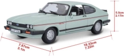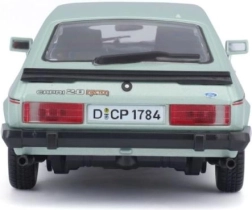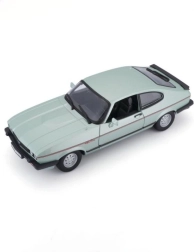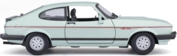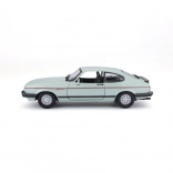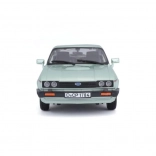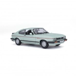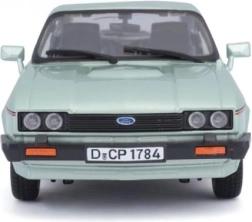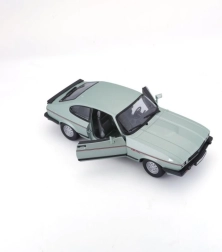 Model metalic Ford Capri 1982 la scară 1:24 în culoare elegantă verde deschis. Ideal pentru colecționari și iubitorii mașinilor clasice datorită realismului și detaliilor autentice.