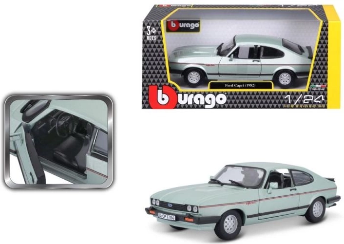 Acest model la scară 1:24 surprinde perfect designul elegant și detaliile unice ale originalului Ford Capri 1982.