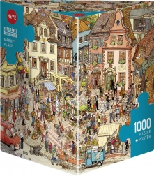 Puzzle HEYE Piața este alegerea ideală pentru iubitorii de puzzle-uri. Cu un ambalaj unic, într-o cutie triunghiulară și un poster ca șablon, veți avea parte de ore întregi de distracție.