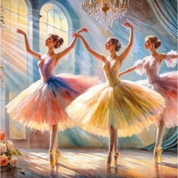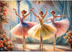 Experimentați distracția și relaxarea cu acest puzzle frumos de 1000 de piese, care prezintă trei balerine în poziții elegante.