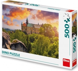 Bucurați-vă de momentele libere asamblând puzzle-ul de 500 de piese, care prezintă castelul pitoresc Hrubá Skála înconjurat de verdeață și un apus de soare dramatic. Asamblarea puzzle-ului dezvoltă imaginația spațială și îmbunătățește concentrarea.