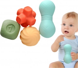 Descoperă lumea jucăușă a atingerilor cu mingile și cuburile senzoriale pentru bebeluși de la 3 luni. Setul de 6 elemente colorate, cu forme și texturi diferite, dezvoltă percepția senzorială, coordonarea mână-ochi și motricitatea fină. Fabricate din silicon moale și sigur, potrivite și pentru perioada de erupție a dinților.