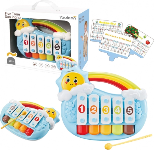 Descoperiți primele pași muzicali ai micuțului dumneavoastră cu pianina în formă de soare. Generarea mecanică a tonurilor fără baterii este intuitivă și sigură – este suficientă o bătaie ușoară pe clape. Culorile contrastante atrag atenția, iar cartonașele cu note incluse facilitează învățarea melodiilor simple și dezvoltă simțul ritmului.