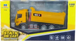 Modelul este echipat cu o benă mobilă, care poate fi ridicată și coborâtă, permițând simularea procesului de încărcare și descărcare. Marcajele autentice, cabina șoferului lucrată cu precizie și detaliile realiste ale construcției fac ca modelul să arate ca un camion adevărat de construcții. Roțile rotative asigură o mișcare lină pe diferite suprafețe, sporind interactivitatea modelului.