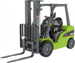 Acest model de cărucior este echipat cu furci mobile, care permit ridicarea și coborârea, simulând astfel munca reală a vehiculului. Roțile rotative asigură mișcarea lină și autenticitatea sporită a modelului.