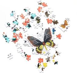 Descoperiți diferite specii de fluturi minunați, mici și mari, cunoscuți și exotici, din întreaga lume. Puzzlove Fluturi cu 1000 de piese este o alegere excelentă pentru cei care vor să se distreze, să se relaxeze în compania preferată și să își mențină mintea în formă.