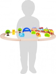 Piesele de șină sunt compatibile cu căile ferate din lemn populare de pe piață, astfel încât poți extinde setul în continuare. Prelucrarea atentă din lemn și marginile netede asigură joacă în siguranță, în timp ce culorile vii invită la descoperire repetată.