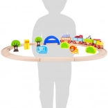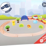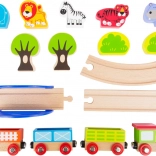 Ovale de șine, pod, copaci, arbuști, indicator ZOO și figurine de animale – totul într-un singur pachet pentru joc imaginativ bogat.