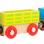 Locomotiva și vagoanele se cuplează cu magneți, astfel încât copiii pot transfera ușor animăluțele și își pot crea propriile povești din zoo.