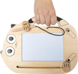 Bucurați-vă de distracție creativă fără sfârșit cu această tăbliță de desen magnetică în formă de pisică. Datorită designului robust, este ideală pentru micii artiști care iubesc să deseneze!
