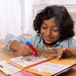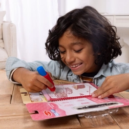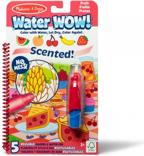 Caietele de colorat cu apă Water WOW! parfumate oferă copiilor distracție creativă fără carioci și fără pete. După umezire, imaginile cu fructe se colorează instant, iar după uscare dispar, putând fi folosite iar și iar. Blocul compact cu spirală și stiloul cu apă inclus este un companion grozav pentru călătorii.