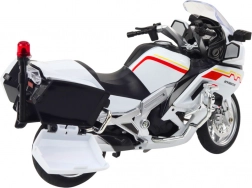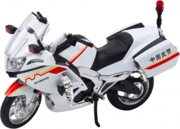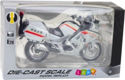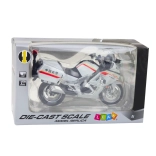 Descoperiți un model de motocicletă elaborat în detaliu, în culoare albă cu linii roșu‑galbene, care surprinde fidel dinamica vehiculelor moderne pe două roți. Corpul metalic, în combinație cu plastic de calitate, asigură o durată de viață îndelungată, în timp ce elementele realiste precum oglinzile și farurile conferă modelului un aspect autentic.