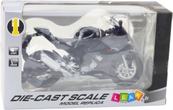 Modelul este echipat cu efecte luminoase și sonore, care se activează cu ajutorul a 3x baterii AG13 (incluse în pachet). Aceste funcționalități suplimentare cresc realismul jocului, făcând motocicleta să pară și să sune ca un vehicul real. Designul sportiv dinamic în negru, inspirat de motocicletele clasice de curse, conferă modelului un caracter autentic.