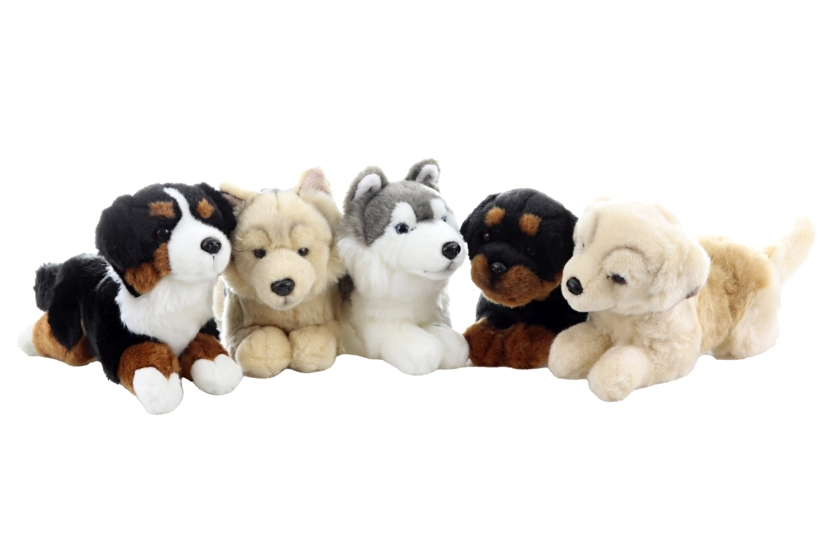 Alegeți din mai multe variante drăgălașe – de la husky la câinele de tip bernese mountain dog până la rottweiler. Livrăm în funcție de disponibilitatea pe stoc.