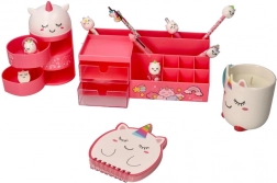 Nuanțe fine de roz, cu un chip simpatic și detalii de unicorn, aduc stil și joacă biroului tău.