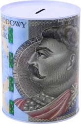 Pușculiță metalică elegantă cu motivul bancnotei poloneze de 500 PLN, care ajută la economisirea regulată. Datorită construcției solide din oțel și designului nedeschis, rezistă tentației de a scoate banii mai devreme. Dimensiunile compacte 16 × 12 cm, fanta pentru monede și bancnote și imprimarea decorativă o transformă într-un accesoriu grozav pentru camera copilului, birou sau raft.