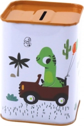 Pușculița metalică cu motiv dinozaur este concepută pentru micii economi. Construcția solidă asigură depozitarea sigură a monedelor și o durată de viață îndelungată, iar designul jucăuș completează frumos decorul camerei copilului.
