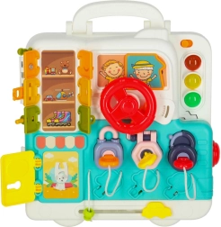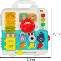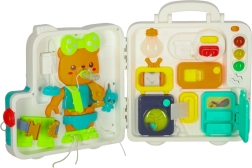 Dezvoltați abilitățile copilului cu această tablă senzorială Montessori, care îmbină joaca și învățarea într-un format practic de valiză. Tablă concepută pentru a stimula simțurile copilului și pentru a-i susține motricitatea fină și gândirea logică.