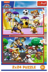 Descoperă bucuria asamblării cu tema Ziua distracției cățeilor din popularul serial PAW PATROL. Două imagini separate a câte 24 de piese sunt grozave pentru copiii care încep să facă puzzle-uri și pentru frați care vor să se joace împreună.