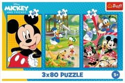 Descoperă distracția pentru copii cu setul de puzzle-uri 3x80 piese cu tema echipa MICKEY MOUSE de la Trefl. Într-un singur pachet găsești trei puzzle-uri separate, astfel încât se pot implica și frații sau prietenii. Fiecare imagine finală are dimensiunea de 275 × 180 mm și este realizată din materiale de calitate, ecologice, cu certificare FSC.