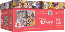 Descoperiți „Marea carte DISNEY” sub forma unui puzzle de mari dimensiuni, care îmbină personaje și scene iconice într-o mozaică impresionantă. Datorită tehnologiei TREFL Unlimited Fit Technology (UFT) puteți conecta imaginile individuale (4×1500 piese) și crea propriul aranjament sau urma compoziția recomandată.