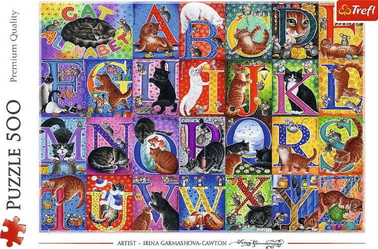 Puzzle-ul Trefl cu motivul Alfabetul pisicilor aduce bucuria asamblării pentru copii și adulți. Designul colorat și detaliat este perfect pentru relaxare, dezvoltarea răbdării și ca decor după lipire. Cu 500 de piese, asamblarea reprezintă o provocare plăcută pentru câteva seri.