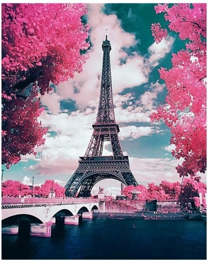 Set creativ pentru realizarea unei imagini mozaic cu diamante al Turnului Eiffel sub copaci roz de dimensiuni 30x40 cm oferă ore de distracție plăcută și relaxantă. Lipirea pietricelelor diamantate atrage pe toată lumea, indiferent de vârstă, permițând astfel crearea de imagini împreună cu familia sau prietenii. Odată finalizată, puteți înrăma opera cu ramele noastre oferite.