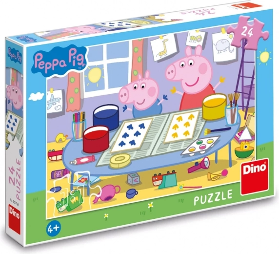 Faceți bucurie micilor fani ai purcelușei Peppa cu un puzzle distractiv cu tema pictoriței. Acest puzzle pentru copii cu 24 de piese mari este ideal pentru vârsta 3+, dezvoltă motricitatea, răbdarea și atenția și, datorită cartonului rezistent și netoxic, este sigur chiar și pentru cei mai mici. Fabricat în Republica Cehă.