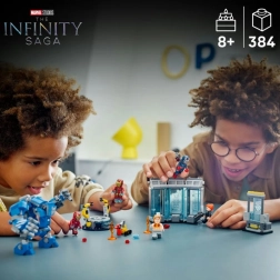 Construiește arsenalul lui IRON MAN cu capsule transparente albastre care scot în evidență trei costume celebre. Acțiunea este asigurată de mech-ul articulat Igor MK3 cu cockpit pentru minifigurină, de două brațe robotizate pe platforma de service și de un scanner pentru diagnostic. Setul este ideal atât pentru recrearea scenelor din filme, cât și pentru expunere stilată.