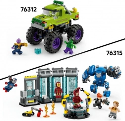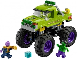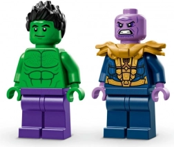 Construiește un monster truck eroic, pregătit pentru orice misiune. Cabina cu deschidere ascunde loc pentru minifigurina Hulk, roțile uriașe și suspensia amortizată fac față oricărui teren, iar inscripția Hulk Smash! oferă vehiculului un stil inconfundabil. Nu lipsește nici impresionantul Thanos cu Mănușa Infinitului și Tesseractul pentru confruntări epice dintre bine și rău.