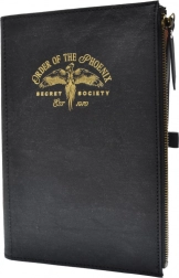 Păstrați-vă notițele, ideile și listele mereu la îndemână. Acest carnet premium, în format compact A5, oferă un înveliș rezistent cu fermoar, care protejează paginile și accesoriile mici. Suprafața neagră cu imprimare aurie luxoasă „Order of the Phoenix Secret Society” va încânta orice fan al universului Harry Potter și va adăuga o notă magică notițelor dvs.