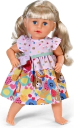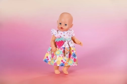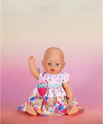 Împrospătați garderoba păpușilor BABY born cu această rochiță fermecătoare cu imprimeu fructat. Datorită detaliilor cu volănașe și curelei amuzante cu căpșună, ținuta arată proaspăt și jucăuș. Se potrivește de minune păpușilor și ursuleților BABY born Teddy de 43 cm.