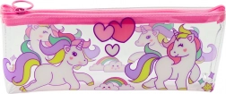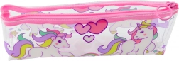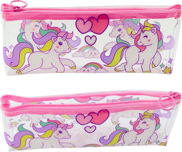 Penarul adorabil cu motiv de unicorni este camaradul perfect pentru necesitățile școlare zilnice. Corpul său transparent, cu un fermoar roz aprins, se potrivește ușor în rucsac sau dulap fără a ocupa mult spațiu. Datorită materialului transparent, puteți identifica rapid conținutul, facilitând organizarea obiectelor de școală.