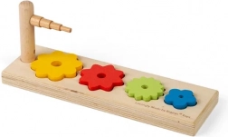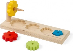 Acest puzzle din lemn îmbină potrivirea și așezarea pieselor într-o singură activitate distractivă. Patru flori colorate se sortează după mărime și formă, susținând în mod natural dezvoltarea abilităților cognitive și percepția spațială. Copiii exersează prinderea, precizia și răbdarea atunci când poziționează corect piesele.