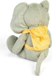 Adorabilul elefant de pluș gri-verzui cu rucsăcel galben este partenerul ideal pentru joacă și somn. Este moale la atingere, oferă un sentiment de siguranță și susține dezvoltarea emoțională a copiilor. Fabricat din materiale reciclate cu certificare GRS și respectă standardele europene actuale de siguranță – o alegere excelentă încă de la naștere.