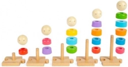 Înșirarea inelelor și a căpșoarelor pe tije dezvoltă priza, precizia și coordonarea mână–ochi – ideal pentru copii de la 1 an.