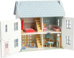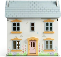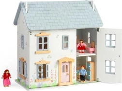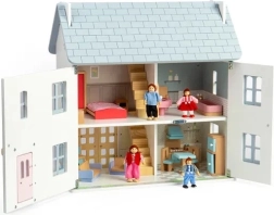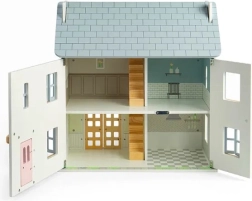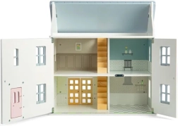 Încântătoarea căsuță din lemn pentru păpuși, în nuanțe pastelate delicate, cu detalii victoriene, aduce atmosfera verii și joacă nesfârșită. Oferă 2 etaje + pod, 4 camere, 2 scări și fațadă, ferestre și uși care se deschid. Realizată din lemn certificat FSC® și finisată cu vopsele netoxice, susține jocul imaginativ, motricitatea fină și dezvoltarea lingvistică și emoțională. Mobilierul și păpușile nu sunt incluse în pachet.
