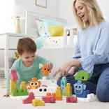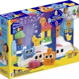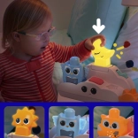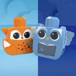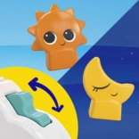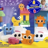 Setul interactiv Mega Bloks cu lumină de noapte îi ajută pe copii să creeze un ritual sănătos de dimineață și seară. Include 4 figurine și un mediu construit din blocuri. Pe lumina de noapte se poate așeza blocul cu luna sau soarele pentru a porni cântece de leagăn, sunete delicate, efecte luminoase și un proiector de stele pentru seară sau cântece optimiste, sunete de ambient și modele luminoase solare pentru dimineață. Ideal pentru copii de la 1 an.