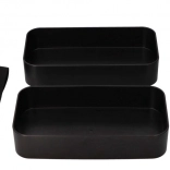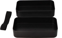 Două recipiente separate păstrează felul principal și garnitura despărțite. Cureaua elastică fixează ferm întreaga cutie în timpul transportului.