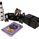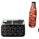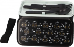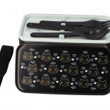 Cutia de prânz neagră, elegantă, cu motiv de pisică, este ideală pentru serviciu, școală și excursii. Cele două niveluri pentru porții separate păstrează mâncarea organizată și proaspătă, în timp ce capacul robust și cureaua elastică asigură transportul în siguranță fără deschidere accidentală.
