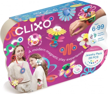 CLIXO Jewelry este un set tematic sclipitor inspirat de origami, care, cu ajutorul magneților puternici, conectează diverse forme pentru a crea bijuterii și accesorii originale. Benzile lungi și elementele florale special concepute permit realizarea de spirale, pandantive și accesorii de păr de efect. Piesele sunt rezistente la apă, ușoare și sigure – fără BPA și ftalați.