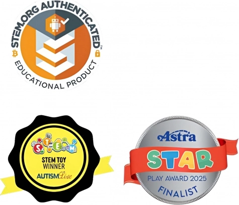 Sistemul rotativ unic, cu fixare în 24 de poziții, oferă stabilitate creațiilor și dezvoltă percepția spațială, motricitatea fină și gândirea creativă. Setul este ideal pentru activități STEAM acasă și la școală, fiind totodată o excelentă soluție antistres pentru copii și adulți.