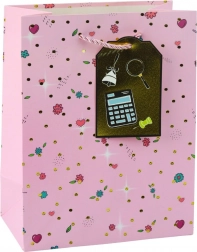 Sacoșă cadou pentru ocazii școlare deosebite este proiectată minunat cu un model modern inspirat de motive școlare, care atrag atenția și oferă cadoului un caracter unic. Confecționată din carton decorativ de calitate, garantează durabilitate și aspect estetic chiar și la transportul obiectelor mai grele. Mânerele din șnururi aurii oferă confort și siguranță la transport.