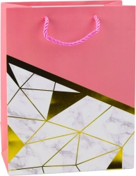 Geanta de cadou cu modele de marmură și auriu oferă o combinație de eleganță modernă și stil, ideală pentru diverse ocazii.