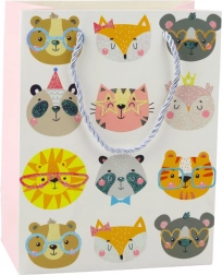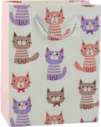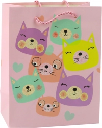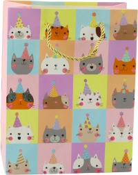Datorită dimensiunilor de 23 x 18 x 10,5 cm, punga este ideală pentru împachetarea diferitelor tipuri de cadouri - de la mărunțișuri, la cosmetice, până la cărți și alte accesorii. Este disponibilă în patru designuri diferite, fiecare cu un motiv de pisicuțe în culori vesele și cu finisaje de brocart. O alegere excelentă pentru zilele de naștere, sărbători, Ziua Copilului sau alte ocazii speciale!
