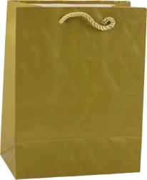 Mânere puternice din șnururi aurii pentru o purtare confortabilă.