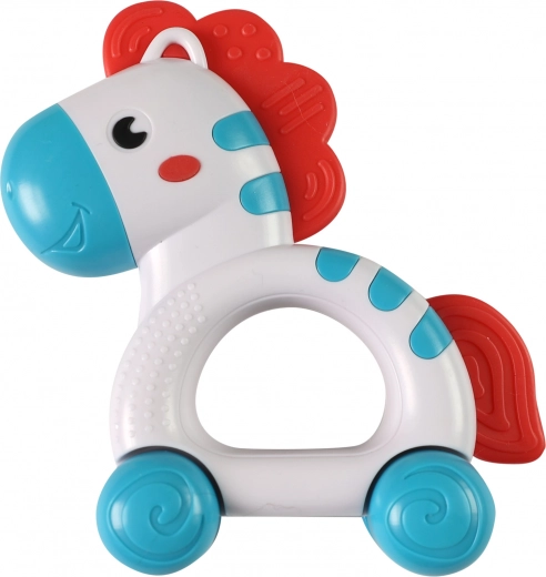 Zornăitoarea colorată în formă de cal va bucura orice bebeluș. Datorită prinderii ușoare și sunetului delicat, ajută la dezvoltarea motricității fine, a percepției vizuale și a curiozității naturale a copilului.